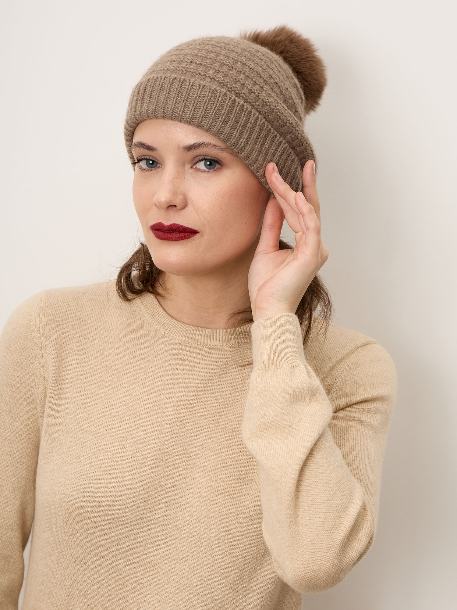 Женская шапка из монгольского кашемира в оттенке капучино — это сочетание премиального качества, лаконичного дизайна и безупречного комфорта. Модель с аккуратным помпоном добавляет мягкий акцент и делает образ более выразительным, оставаясь при этом универсальной и вне времени. Это не просто аксессуар, а инвестиция в комфорт на долгие годы.