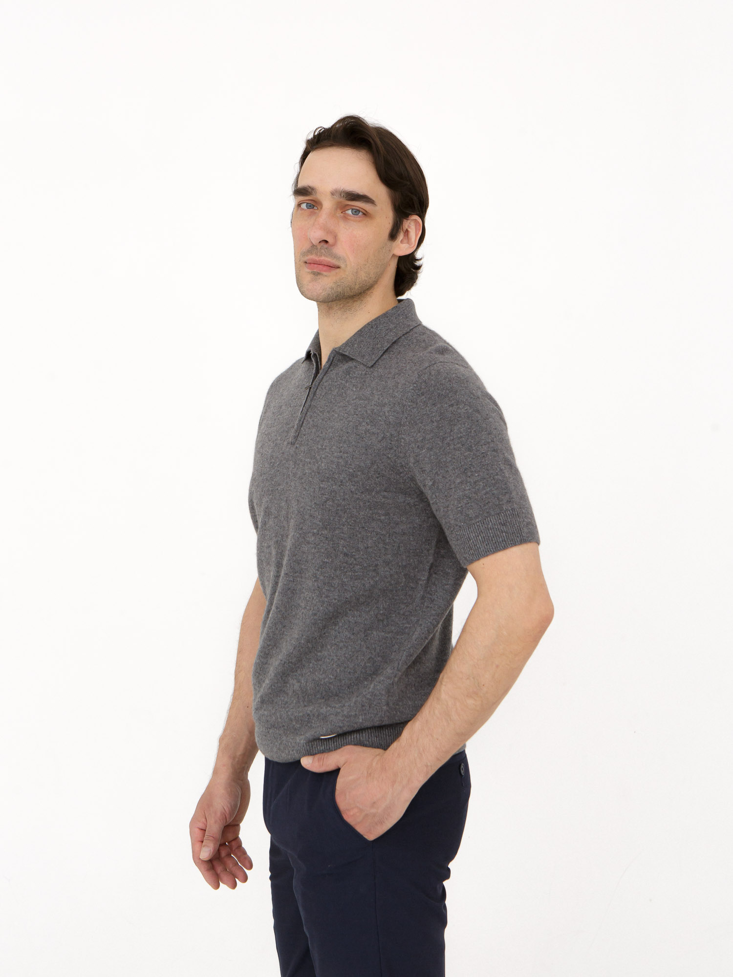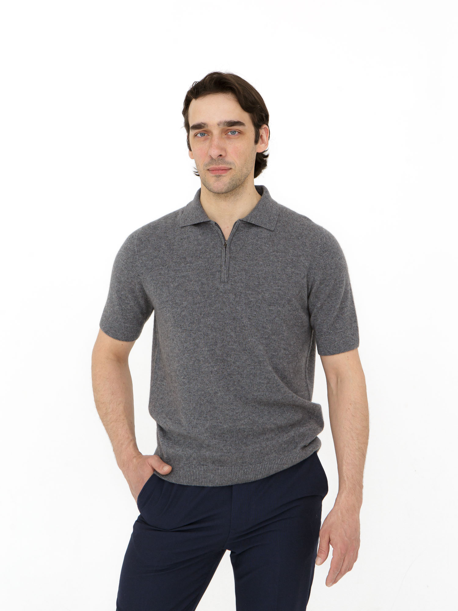 Мужской джемпер из кашемира в стиле поло — лёгкая и элегантная модель для тёплого сезона. Сочетает комфорт, минимализм и современный городской стиль.