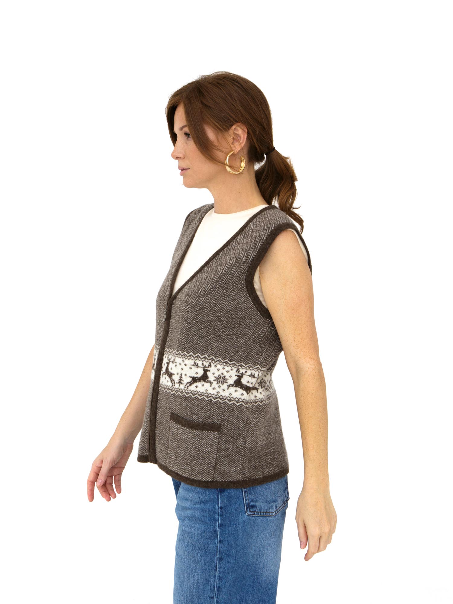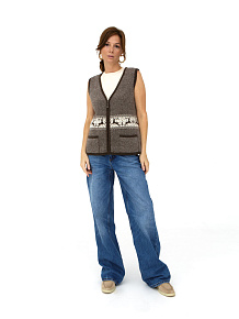 Жилет из 100% шерсти на замке 12W07001 c рисунком коричневый
